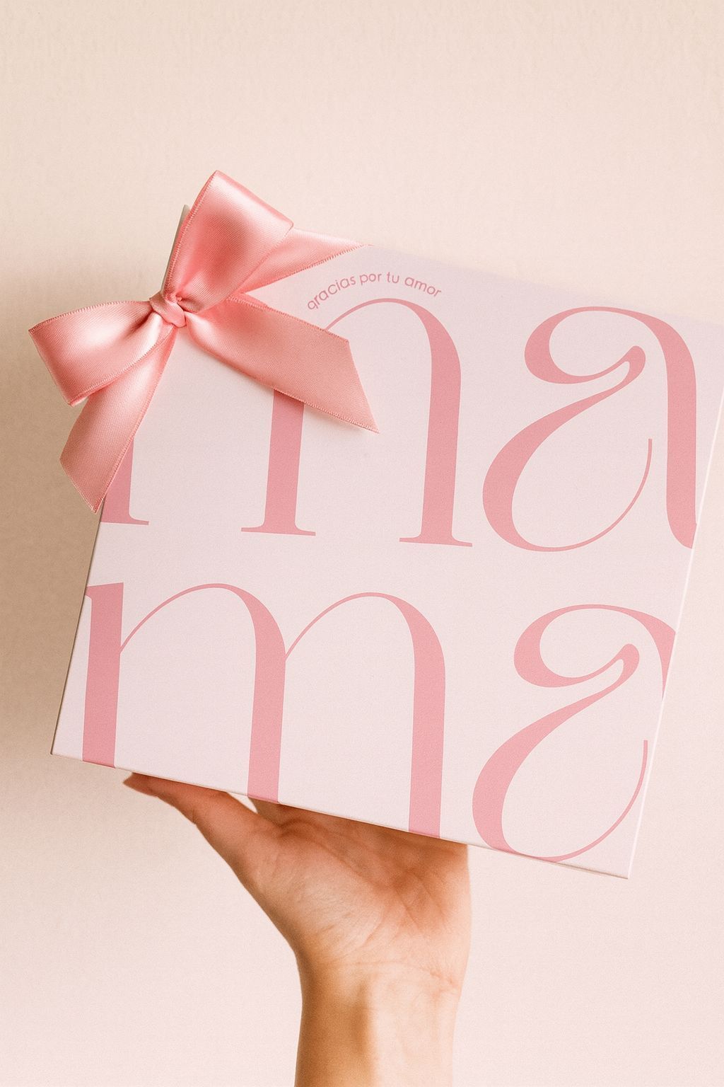 -caja cuadrada blanca chica con frase "Gracias por tu amor mama" 20x20x12